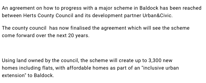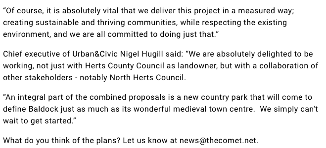 Revivel’s response to plans agreed for major 20 year Baldock development scheme.