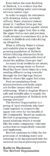 The above article was published on the local Comet website on 25th March 2022 and then printed in the Comet newspaper on 31st March 2022.The Comet asked for responses and Kathryn Mackenzie from RevIvel responded and her letter was published a week later, which his produced below.